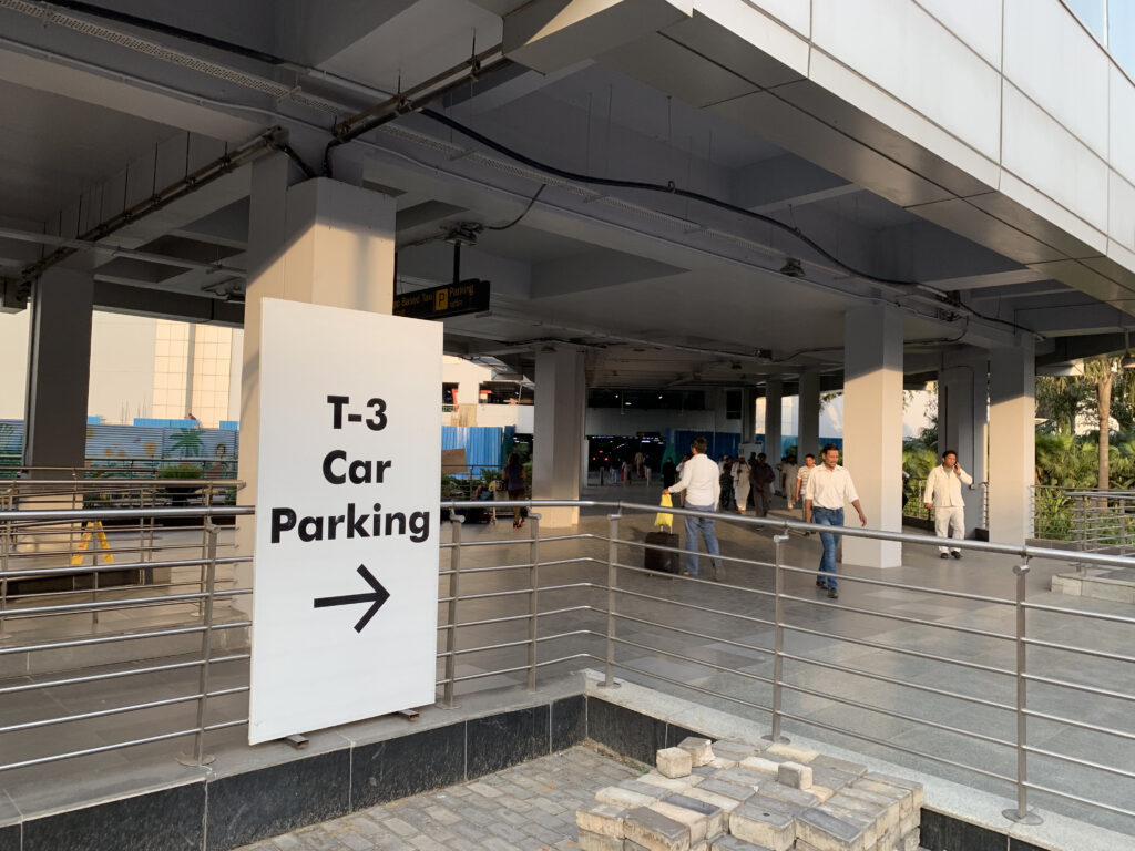 メトロは左方向、UberやOlaのタクシー乗り場は右方向にあるターミナル3駐車場内です。
