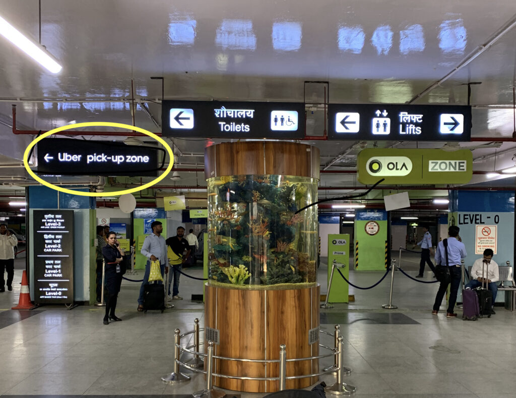 下の写真は、立体駐車場に入ったところです。UberとOlaの乗り場が見えてきます。