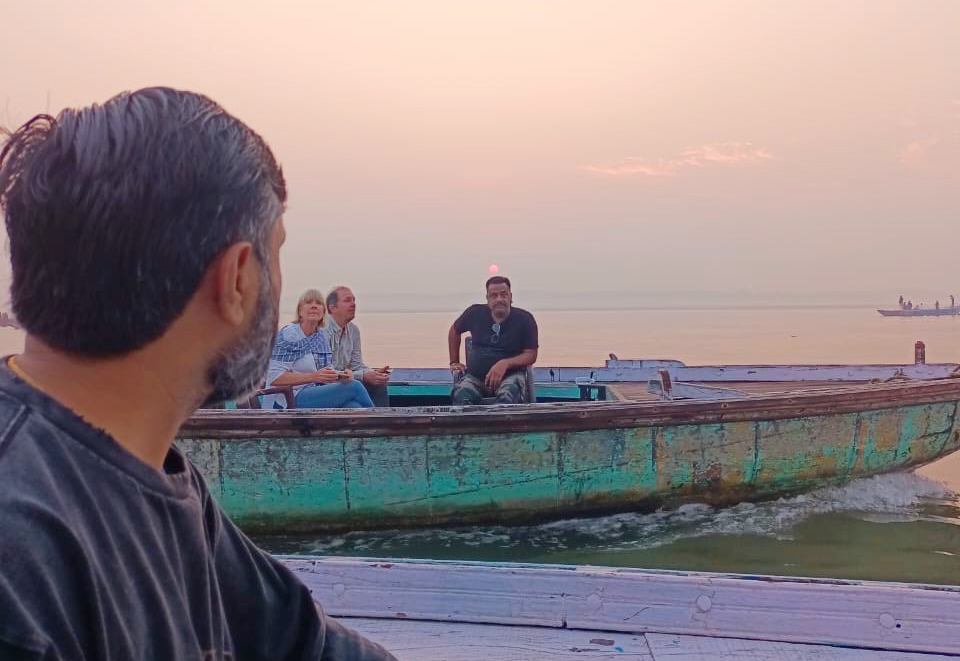 朝のガンジス川をボートに乗って観光、ガンジス川のガートを散策