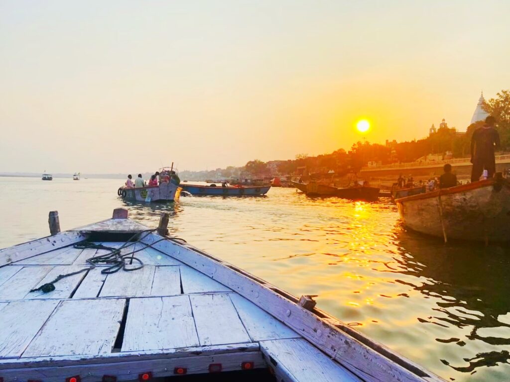 早朝のガンジス川は、最も静かで神聖な時間帯。ボートに乗って川を進むと、祈りを捧げる人々や沐浴する巡礼者の姿が浮かび上がり、川そのものが大きな祈りの場であることを感じられます。カルマを洗い流す聖なる川の意味が、肌でわかる体験です。